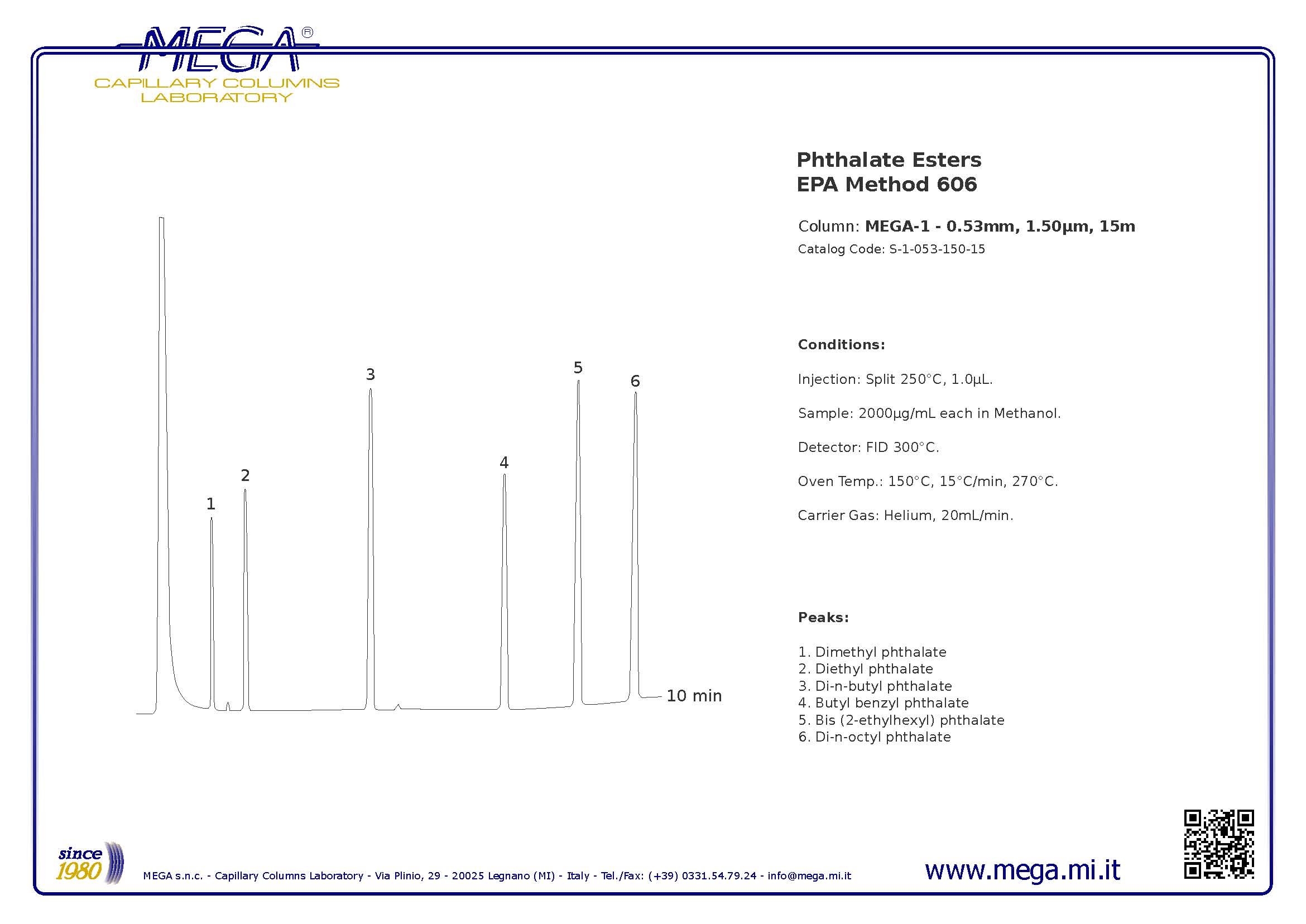 我們向您推薦氣相色譜法檢測食品中塑化劑的殘留,使用氣相色譜儀和MEGA-1石英毛細管柱,6種常見的鄰苯二甲酸酯累可以得到分離,相關產品和數據如下: