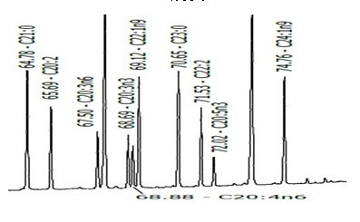 圖2、MEGA-10毛細(xì)管柱完全分離C22:1n9、C20:4n6、C20:3n3