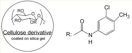 硅膠表面涂敷有纖維素-三(4-氯-3-甲基苯基氨基甲酸酯) |
